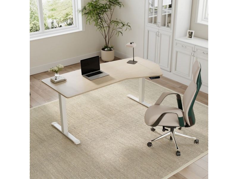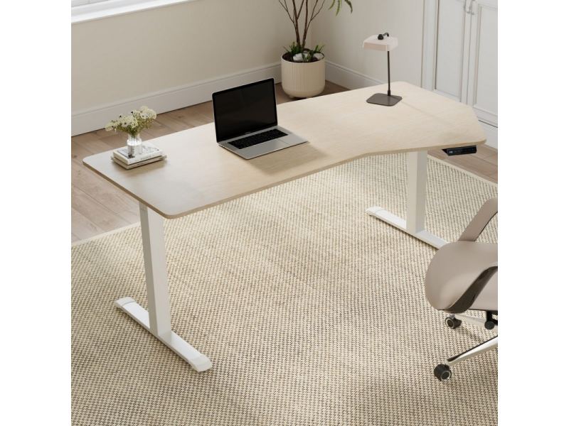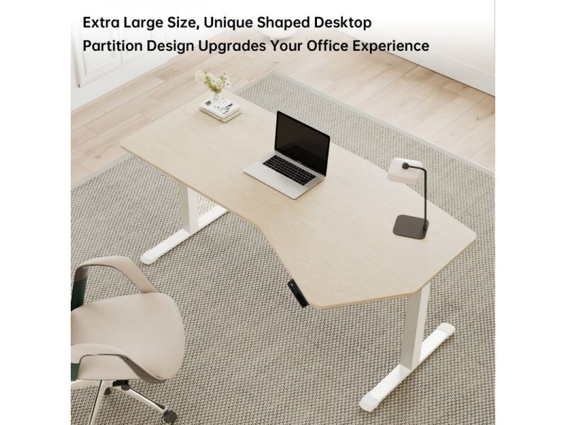 Стол компьютерный с электроприводом уникальной формы 178х74 Eureka ERK-EDI-HTG-MW (Heptagon), клён