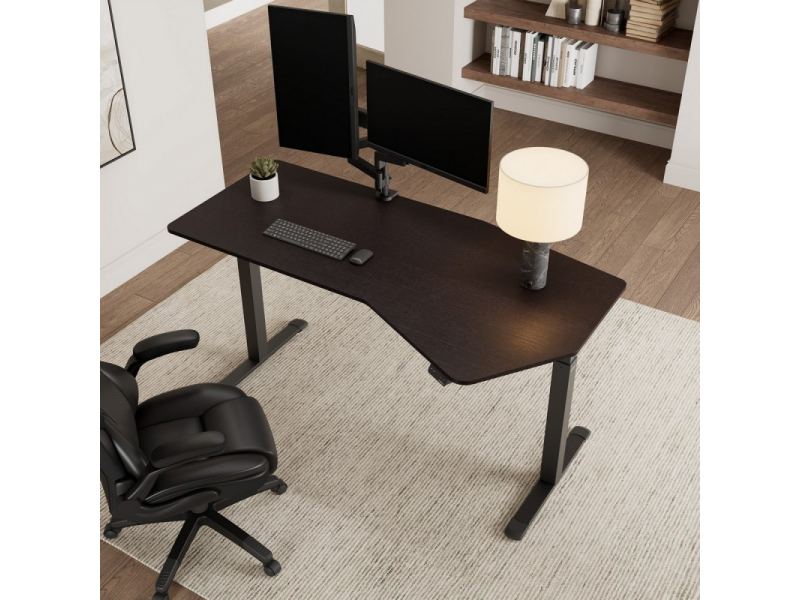 Стол компьютерный с электроприводом уникальной формы 178х74 Eureka ERK-EDI-HTG-SW (Heptagon), копченое дерево
