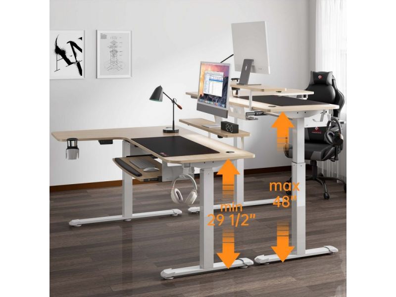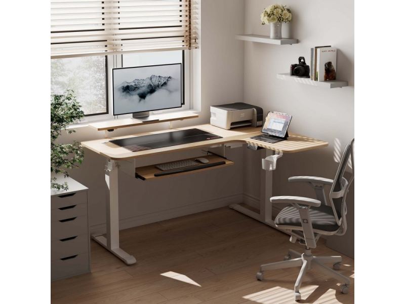 Стол письменный (для компьютера) угловой с электрической регулировкой по высоте EUREKA ERK-EHD-L60R-MW (правый), клён