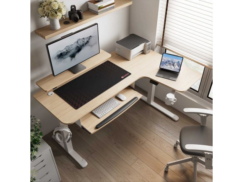 - Большой угловой стол: поверхность стола L-образной формы позволяет максимально эффективно использовать угловое пространство.